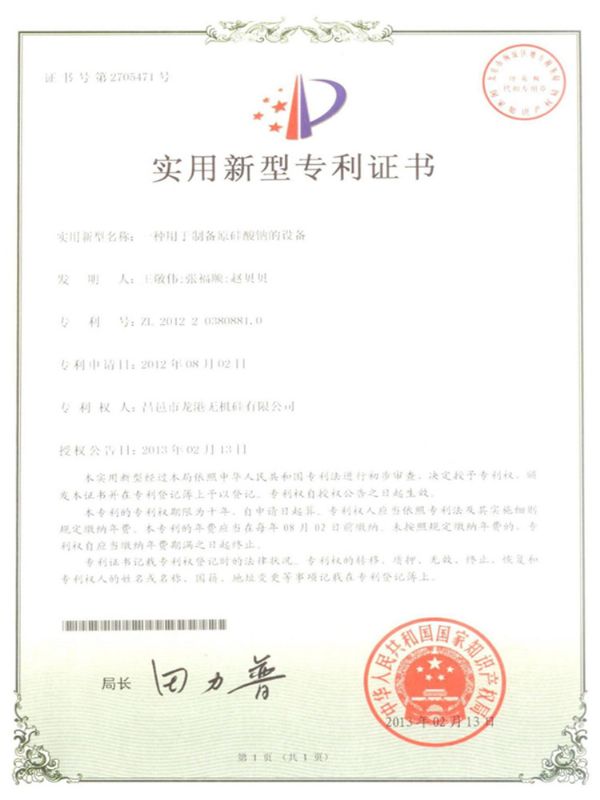科技成果 科技創(chuàng)新平臺 TECHNOLOGICAL HOME-TECHNOLOGICAL Utility model patent certificate Related Information New Silicon Based Flame RetardantLiquid Potassium SilicateSodium OrthosilicateSodium Silicate LiquidSodium Metasilicate Pentahydrate